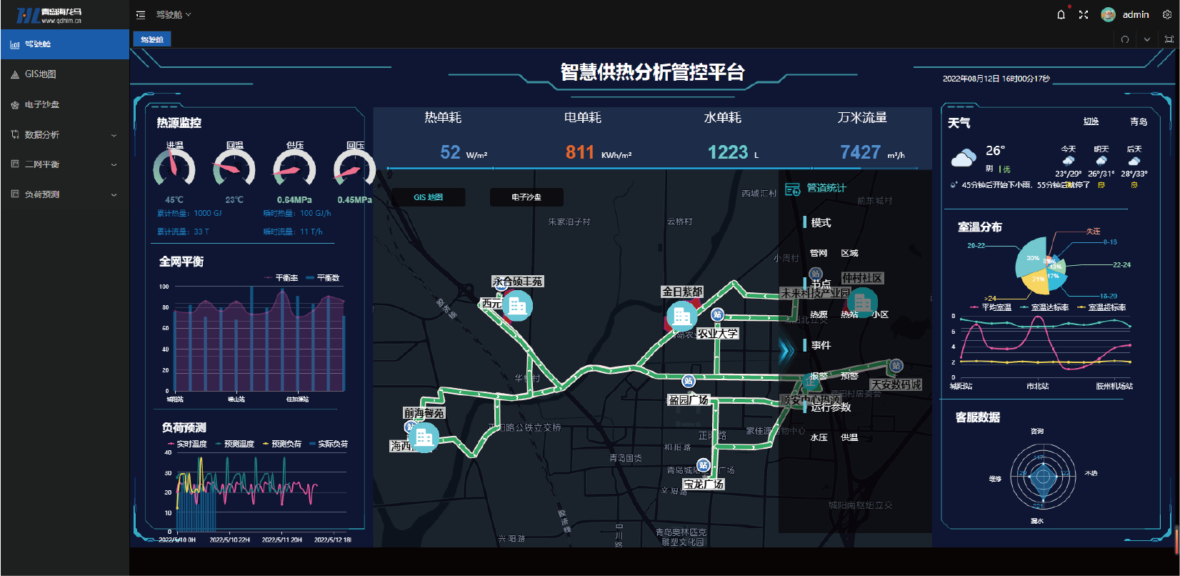 云平臺建設(shè)——在這個層面,我們主要考慮的是,云平臺是否能提供友好的操作界面和可視化數(shù)據(jù),同時容納大量的數(shù)據(jù)。海龍馬二網(wǎng)平衡云通過地圖的方式展示所有小區(qū)的溫度狀態(tài),包括對每個樓棟調(diào)控出來的效果進行數(shù)字化的展示。調(diào)試人員可以通過手機APP實時監(jiān)測樓棟熱力入口的流量、熱量、供回水溫度、閥門開度及樓棟內(nèi)各監(jiān)測點的室溫情況,遠程對樓棟入口的閥門進行調(diào)節(jié)。