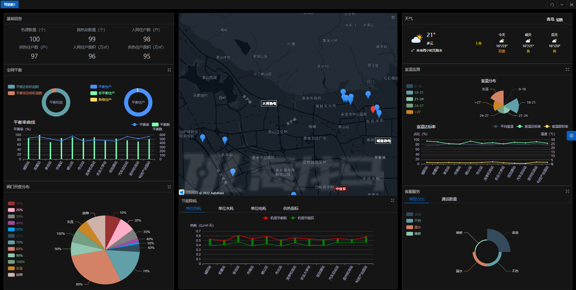 二網(wǎng)平衡解決了水力失調(diào)和熱量的按需分配,是智慧化供熱的第一步,可根據(jù)天氣變化對供熱進(jìn)行質(zhì)調(diào)節(jié)。我公司智慧供熱平臺可以實(shí)現(xiàn)負(fù)荷預(yù)測功能,用來指導(dǎo)換熱站運(yùn)行,節(jié)熱10%以上。