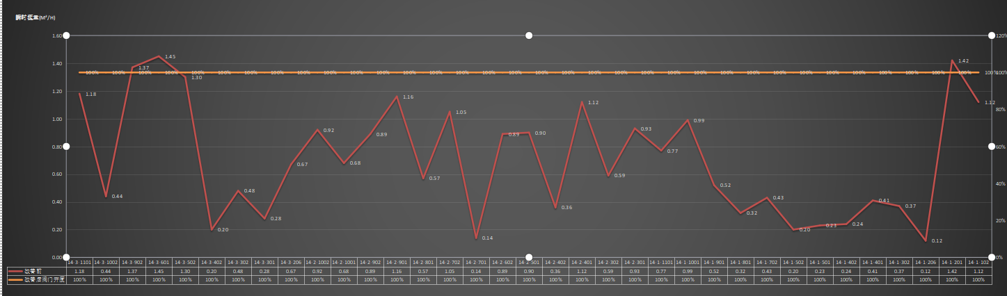 經(jīng)過4個小時的調(diào)試,瞬時流量調(diào)平衡已完全實(shí)現(xiàn)。