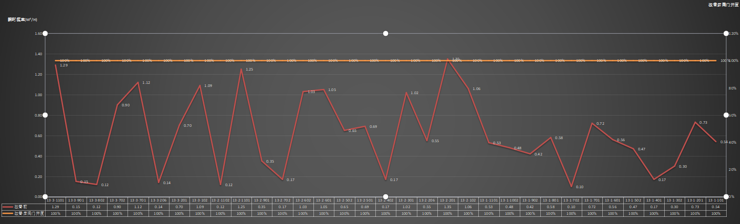 通過對比可以發(fā)現(xiàn),調(diào)節(jié)后大流量的住戶通過減小閥門開度達(dá)到了降低流量的效果,小流量住戶達(dá)到增加效果。